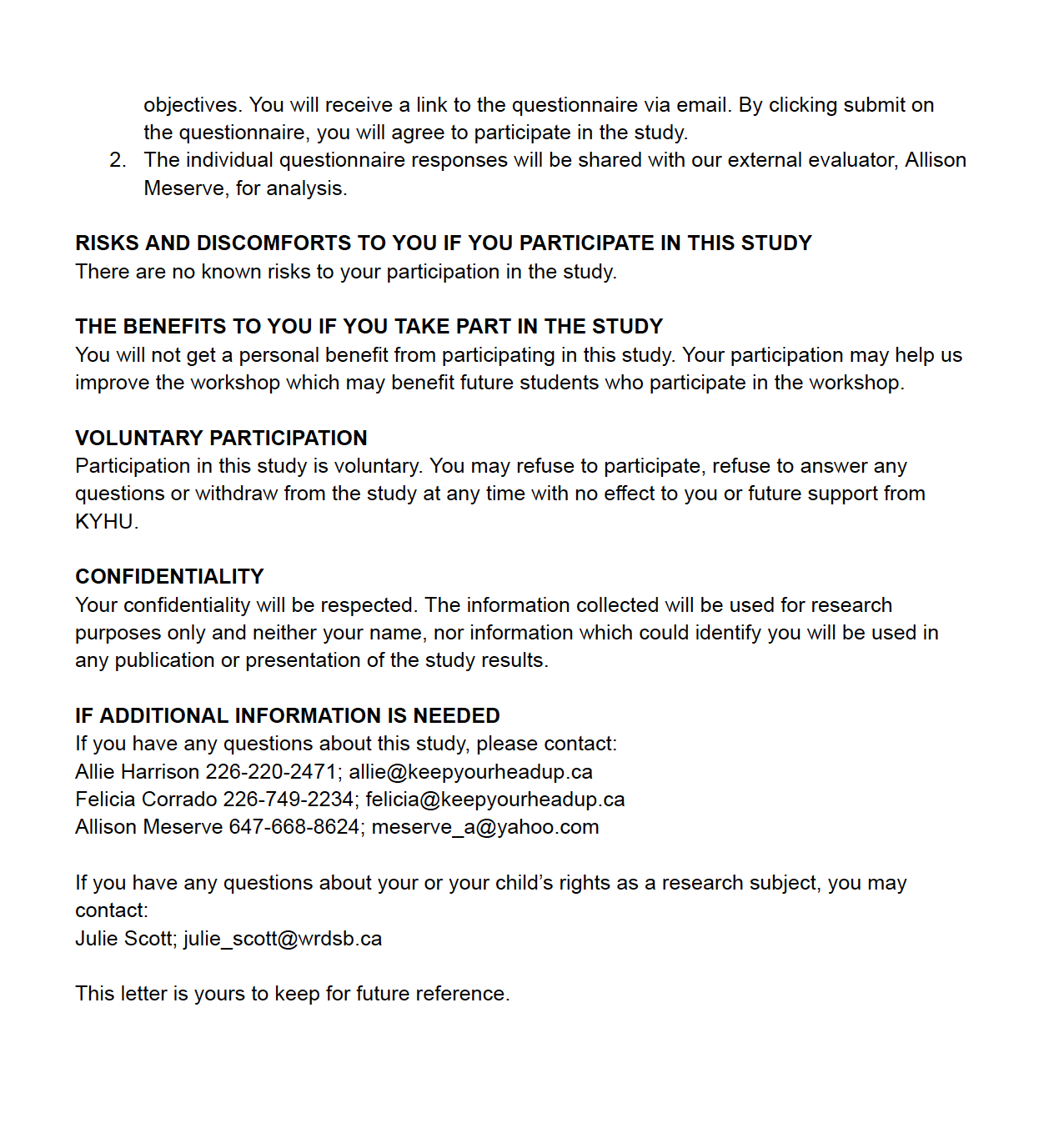 LETTER OF INFORMATION AND CONSENT TO PARTICIPATE IN RESEARCH